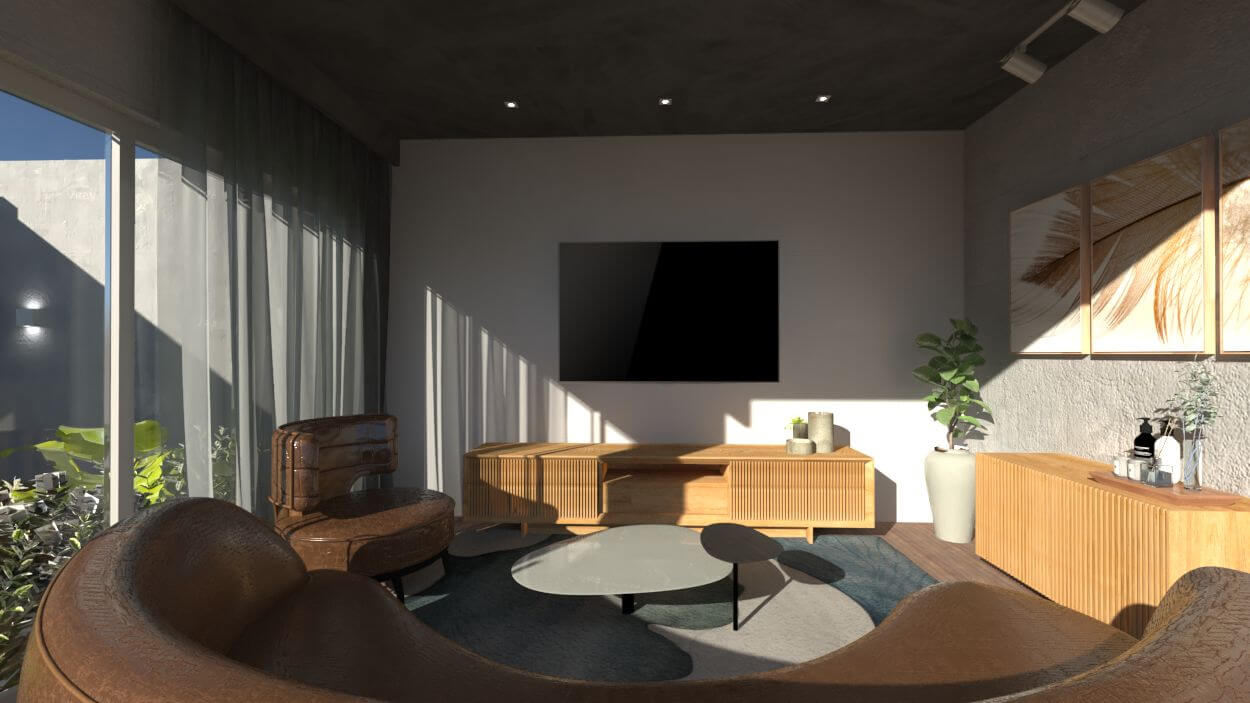 materiais, cores, iluminação, mobiliário e elementos decorativos